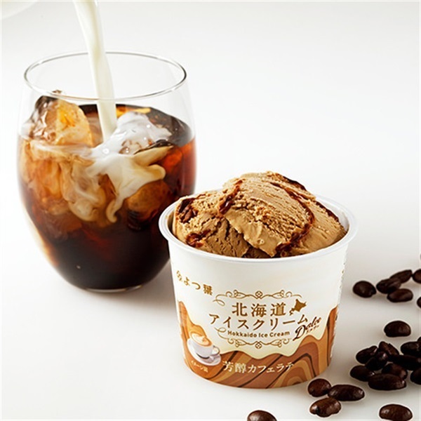 芳醇カフェラテ…ミルク感のあるコーヒーアイスに、ほろ苦いエスプレッソソースが溶け合う大人のアイス。