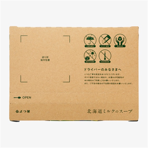 よつ葉の牛乳・乳製品を使用し、こだわりの野菜をチョイスしたミルクスープセット。常温での保存可能で、お客様のお手元に届いてから賞味期限までが270日以上(※1)あるため、キャンプやレジャーなど屋外への携帯はもちろん、非常食や備蓄用にも活用できます。コーン、アスパラ、じゃがいもの3種のスープが一つずつ入ったお試しセットで、お求めやすい価格になっております。外箱は北海道の牧場を連想させる楽しいデザインです。普段の生活に少し贅沢な時間を与えてくれる製品です。本品の販売価格はネコポス送料込みとなります。ヤマト運輸のネコポスで発送いたします。