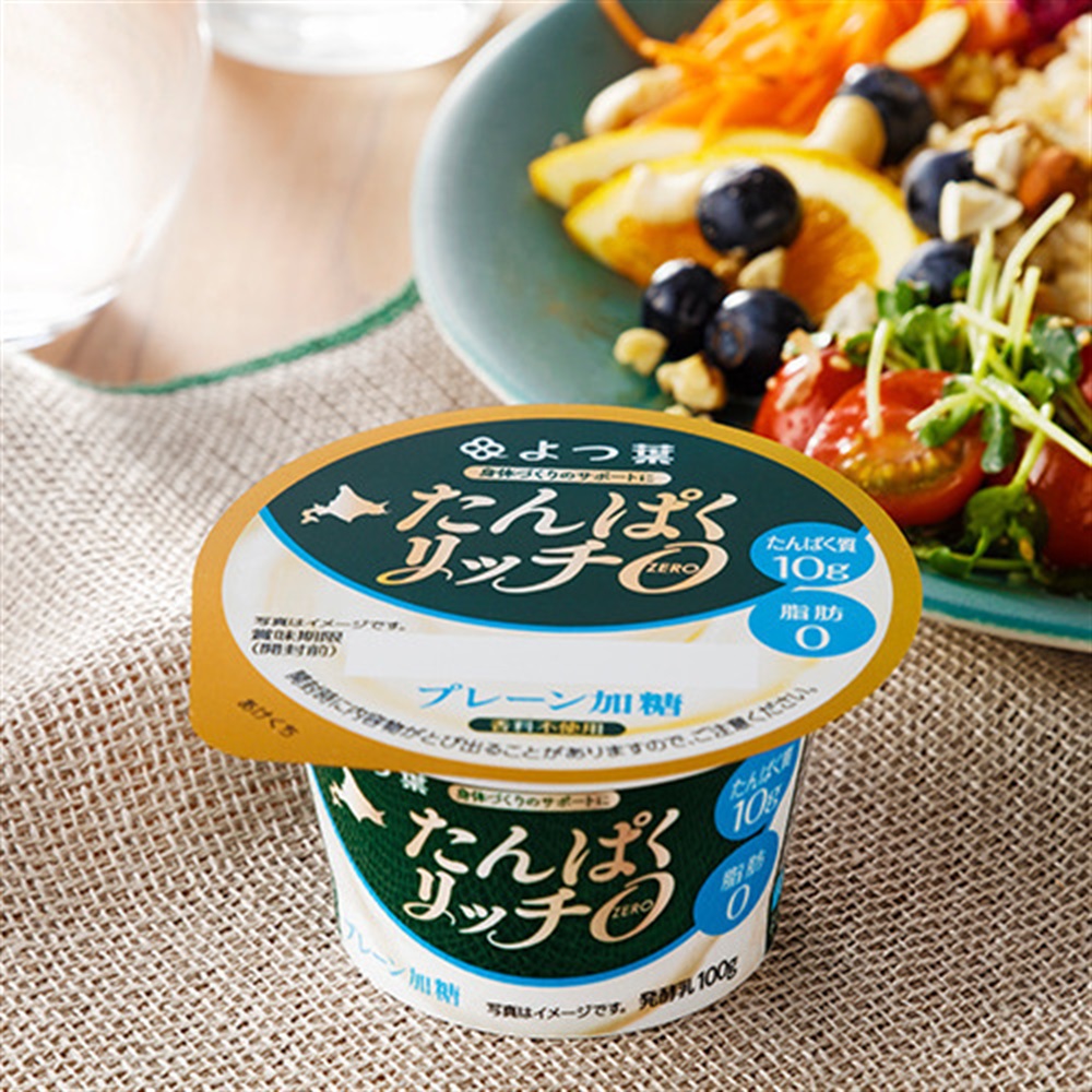 北海道産乳原料で作ったヨーグルトをぎゅっと濃縮した高たんぱく、脂肪0のヨーグルト。ほんのり甘くて濃厚な味わいに仕上げています。