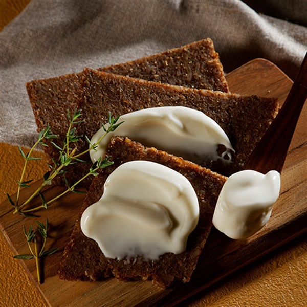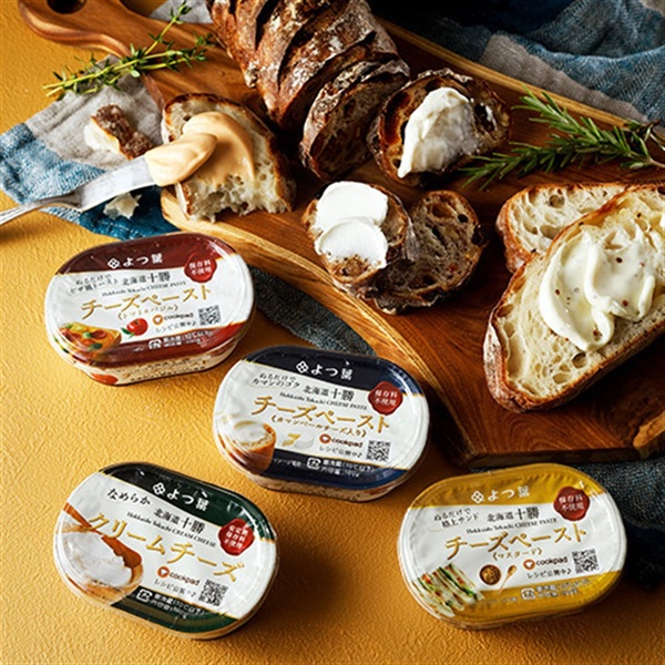カマンベールなどのチーズやバター、脱脂粉乳を使用し、きめ細かくなめらかなペースト状に仕上げました。冷蔵状態でもやわらかく、冷蔵庫から出してすぐスムーズにすくえるので、忙しい朝にもぴったりです。