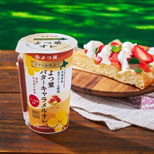 ・よつ葉オレ(チルドカップ)シリーズのオーバーキャップを外すことで、プラスチックの使用量を削減しています。