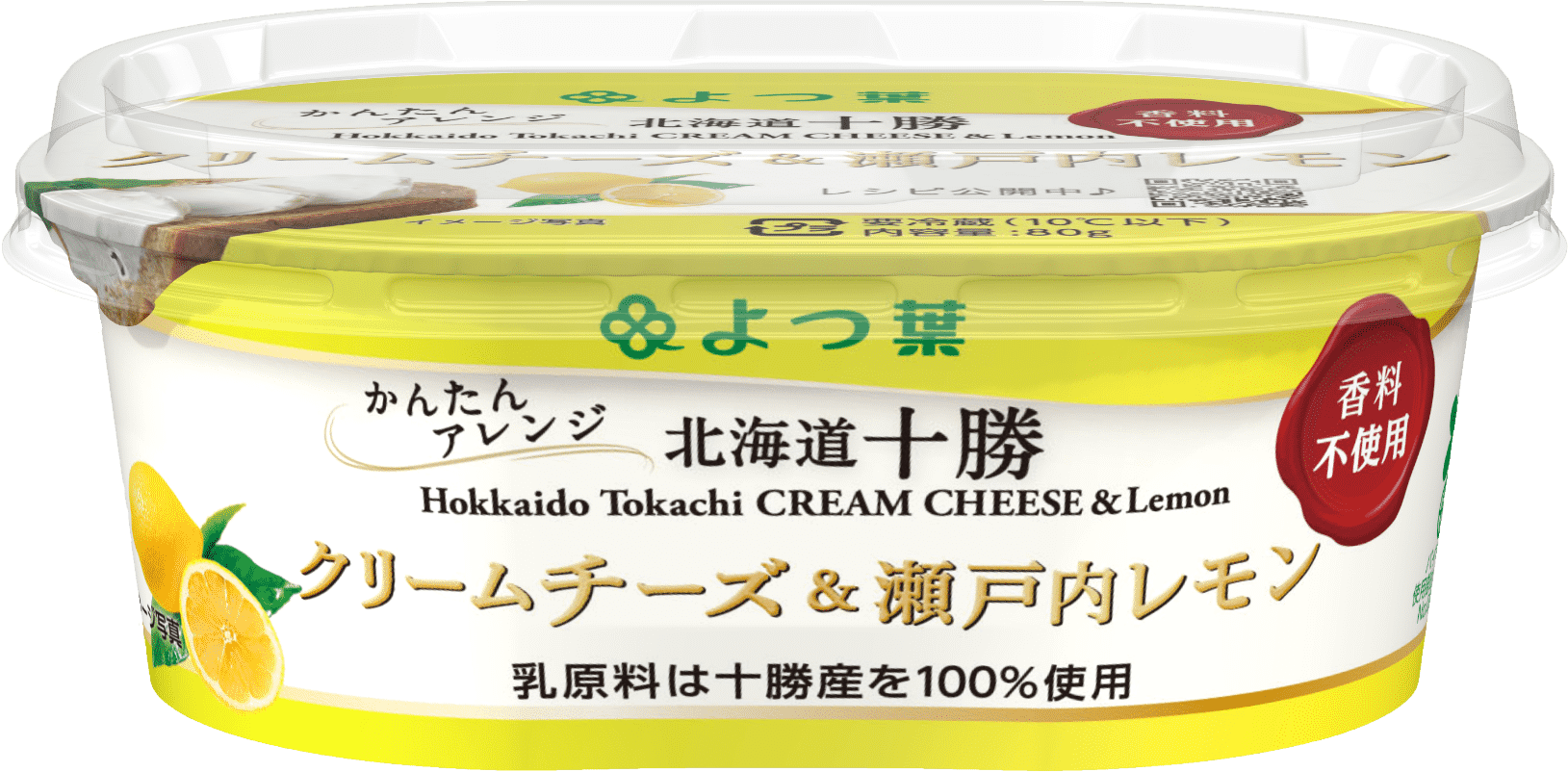 よつ葉のぬるチーズ類を使ったアレンジレシピ 使用している乳原料は北海道十勝産100%。冷蔵庫から取り出してサッと利用することができるなめらかさ、おいしさが特徴です。今回はそんなチーズ類をつかった簡単アレンジレシピをご紹介します。 よつ葉北海道十勝 チーズペースト《カマンベールチーズ入り》 カマンベールチーズ特有の深いコクとうまみが手軽にお楽しみいただける、「北海道十勝 チーズペースト《カマンベールチーズ入り》」の活用例です。 容器ごとレンジでチンするだけ!簡単チーズフォンデュ☆ 上蓋とアルミ蓋を外して容器のまま600Wの電子レンジで30秒チン。一度取り出してスプーンなどで混ぜた後、もう一度600Wの電子レンジで20秒チンするだけで、手軽にチーズフォンデュが楽しめます。※内ふた(アルミ蓋)は、必ず取り除いてから電子レンジでチンしてください。 チンしてフォンデュ☆お好みの野菜をディップ! 上蓋とアルミ蓋を外して容器のままレンジでチンするだけで、簡単チーズフォンデュ風に!ブロッコリーやトマトなどの野菜をディップして食べると◎。 チンしてフォンデュ☆おこげせんべいをディップ! 同じく上蓋とアルミ蓋を外して容器のままレンジでチンしたチーズペーストに、しょうゆ味のおこげせんべいをディップしてみて!手が止まらなくなる、やみつきのおいしさ♪ チーズ好きにはたまらない!クワトロフォルマッジ風トースト クワトロフォルマッジとはイタリア語で「4種のチーズを使ったピザ」という意味。パンに、「北海道十勝 チーズペースト《カマンベールチーズ入り》」を塗って、北海道十勝 3種のチーズ濃厚コク旨ブレンドを載せて焼くだけ!カマンベール、チェダー、ゴーダ、モッツァレラのチーズの4重奏が口いっぱいに広がり、至福の時間を味わえるはず☆コツは、惜しまずたっぷりチーズを使うことです♪ よつ葉北海道十勝 チーズペースト《カマンベールチーズ入り》 よつ葉北海道十勝 なめらかクリームチーズ ミルクの風味豊かで、フレッシュな口当たりの「よつ葉北海道十勝 なめらかクリームチーズ」の活用例です。 相性抜群!スモークサーモンとクリームチーズサンド 冷蔵庫から出してすぐに使えるなめらかな質感だから、食パンにぬりやすく使いやすい!スモークサーモンの深い味わいとクリームチーズのコク、爽やかさが相性抜群のサンドイッチです。 レシピはこちら 餃子の皮でパリッと♪包み焼きピザ風 生ハムとトマトソース、クリームチーズを使用した洋風おつまみレシピ。トースターで簡単に作れちゃいますよ☆ レシピはこちら 和えるだけで簡単デリ風♪塩もみキャベツのクリチサラダ クリームチーズの濃厚なミルク感が加わって、キャベツをぺろりと食べられちゃう♪和えるだけでワンランク上のおいしさに! レシピはこちら クリームチーズとヨーグルトで濃厚さわやか!ひとくちアイス シリコン型を使ったお手軽簡単ひとくちアイスです♪クリームチーズの濃厚でミルキーな味わいと、ヨーグルトのさっぱりさがベストマッチ★いろいろな味のジャムを使って試してみてくださいね☆ レシピはこちら よつ葉北海道十勝 なめらかクリームチーズ よつ葉 北海道十勝 クリームチーズ&瀬戸内レモン レモンソースを使用した爽やかな味わいの「北海道十勝 クリームチーズ&瀬戸内レモン」の活用例です。 爽やかレモン香る、とろけるレモンチーズケーキ レモンの爽やかな香りとクリームチーズのコクが楽しめるチーズケーキ。ビスケットのサクサク感がアクセントとなり、食後のデザートやおもてなしにもおすすめの爽やかスイーツです。 レシピはこちら 簡単なのに本格派!クリームチーズ&レモンが香る鮭のホイル焼き レモンの爽やかな香りとクリームチーズのコクが、ふっくら蒸し焼きにした鮭と野菜に絶妙にマッチ。包み焼きで旨みを閉じ込め、簡単なのに本格的な味わいが楽しめる一品です。忙しい日の夕食にもおすすめ! レシピはこちら 爽やかレモンと濃厚ホワイトチョコが染みわたる卵焼き器で簡単しっとりバウムクーヘン ふんわり生地のバウムクーヘンに、レモン香るチーズとホワイトチョコのソースをたっぷりコーティング。爽やかな味わいとしっとりとした口当たりが楽しめる、ご褒美感たっぷりのスイーツです。 レシピはこちら 甘じょっぱさがクセになる!クリームチーズ&レモン×生ハムのアボカド前菜 ほんのり甘いクリームチーズ&レモンと生ハムの塩気、アボカドのなめらかさが絶妙にマッチ。見た目も華やかで、おつまみやパーティーにぴったりの簡単おしゃれレシピです。 レシピはこちら よつ葉 北海道十勝 クリームチーズ&瀬戸内レモン お気に入り一覧
